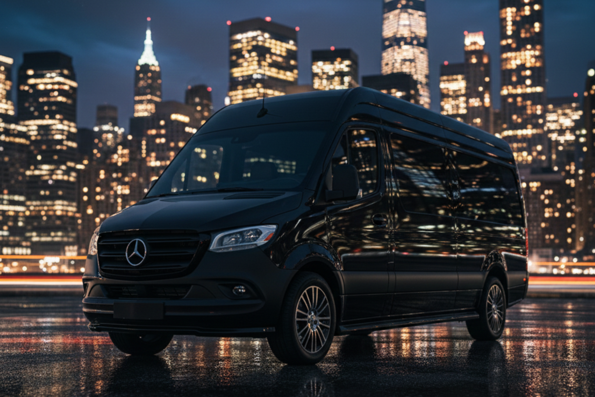 Spacious luxury van for groups — refined comfort with ample luggage capacity.